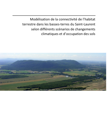 Cette modélisation intègre des simulations de changements d’occupation des sols, des simulations de changements forestiers et des projections climatiques régionales afin de prédire la connectivité écologique au cours du prochain siècle dans les basses-terres du Saint-Laurent. Les résultats de ces travaux illustrent les conséquences potentielles de ces changements pour la biodiversité associée aux forêts et aux milieux humides de ces paysages. Ces travaux d’acquisition de connaissances ont été réalisés par l’Université McGill et ses collaborateurs.