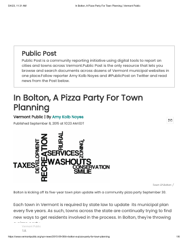 In 2021 the town of Bolton passed new zoning laws that increased the size of their Conservation & Forest Districts to connect with existing conserved land on the south side of the Winooski River in the town of Duxbury. This newly conserved land protected a critically important north-south wildlife corridor connecting the central and northern Green Mountains. This zoning update and land protection was the result of a decade of strategic town planning and began with the multi-town Science to Action (STA) project. STA was a cooperative effort to improve the way natural resources were conserved in the neighboring towns of Bolton, Huntington, Jericho, and Richmond. The project consisted of three main stages: inventory of natural resources and community values, public education and outreach, followed by technical assistance from the Vermont Fish & Wildlife Department. Bolton's successful zoning updates were made possible by the partnership between their town’s Planning and Conservation Commissions. Together the Commissions launched an aggressive outreach campaign to hear from residents and incorporate the Science to Action data into their town plan.