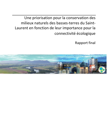 To ensure the sustainability of biodiversity and ecosystem services in fragmented landscapes, current conservation plans increasingly focus on protecting connected habitat networks. Habitat connectivity assessments quantify the extent to which a habitat network is connected, based on the spatial arrangement of habitat patches and dispersal corridors, in relation to the dispersal capacities of the species that use these networks. In the St. Lawrence Lowlands, natural areas have largely been converted to agricultural and urban areas resulting in many small patches that now make up just 30% of the Lowlands. This report identifies conservation priorities among the remaining natural areas in the Lowlands based on the habitat quality and connectivity of a set of focal species: northern short-tailed shrew, American marten, red-backed salamander, wood frog, and black bear.