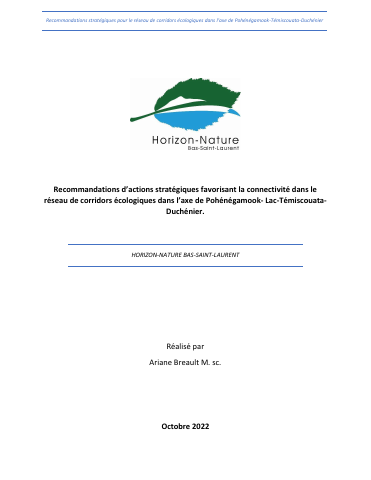 Horizon-Nature Bas-Saint-Laurent et ses partenaires travaillent au déploiement d’un réseau de corridors écologiques qui facilitera le déplacement de la faune et l’adaptation des espèces aux changements climatiques. Ce réseau permettrait de relier entre eux de grands noyaux de conservation principaux, soit l’aire de confinement du cerf de Virginie du lac Pohénégamook, le parc national du Lac-Témiscouata et la réserve faunique Duchénier. Depuis 2021, le secteur de l'autoroute 85 est particulièrement ciblé par les efforts de conservation. En effet, les travaux d'élargissement de la route (à deux voies) en autoroute (à quatre voies) altèrent la connectivité écologique de ce secteur. Afin de contrer cet effet de barrière à la dispersion pour la biodiversité et réduire les risques de collisions entre les automobilistes et la faune, le ministère des Transports Québec construit 31 passages fauniques sous l'autoroute 85. Horizon-Nature Bas-Saint-Laurent travaille donc au déploiement d'un réseau de corridor qui se connectera à ces passages fauniques pour en assurer leur utilisation.